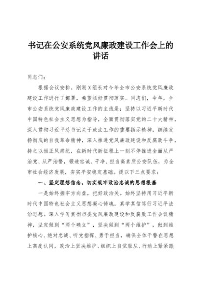 / 【七哥公文】2025年:书记在公安系统党风廉政建设工作会上的讲话+更多免费公文+VX:QiGeGongWen2024