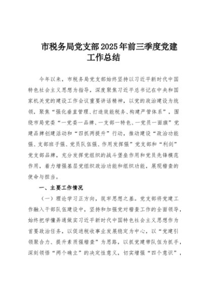 / 【七哥公文】2025年:市税务局党支部2025年前三季度党建工作总结+更多免费公文+VX:QiGeGongWen2024