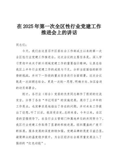 【七哥公文】2025年:在2025年第一次全区性行业党建工作推进会上的讲话+更多免费公文+VX:QiGeGongWen2024
