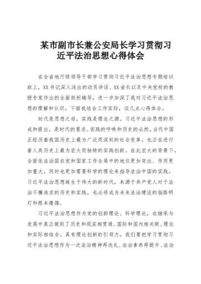 / 【七哥公文】2025年:某市副市长兼公安局长学习贯彻习近平法治思想心得体会+更多免费公文+VX:QiGeGongWen2024