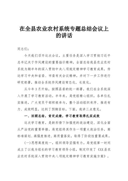 / 【七哥公文】2025年:在全县农业农村系统专题总结会议上的讲话+更多免费公文+VX:QiGeGongWen2024