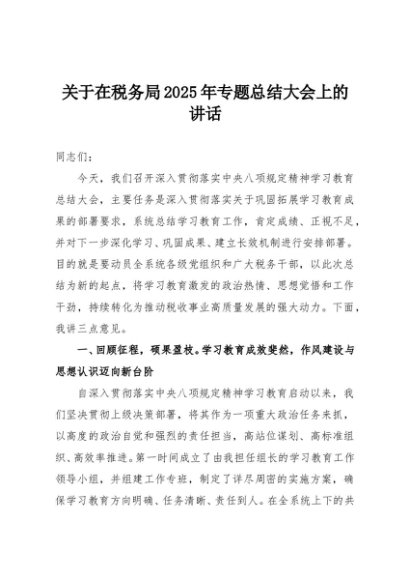 / 【七哥公文】2025年:关于在税务局2025年专题总结大会上的讲话+更多免费公文+VX:QiGeGongWen2024
