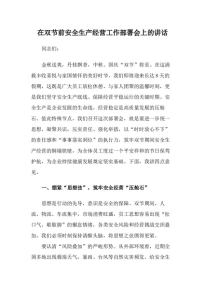 / 【七哥公文】2025年:在双节前安全生产经营工作部署会上的讲话+更多免费公文+VX:QiGeGongWen2024