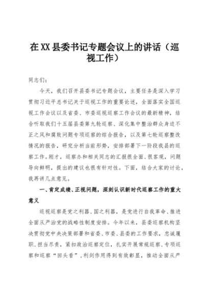 / 【七哥公文】2025年:在XX县委书记专题会议上的讲话(巡视工作)+更多免费公文+VX:QiGeGongWen2024