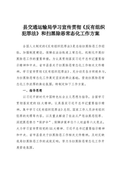 【七哥公文】2025年:县交通运输局学习宣传贯彻《反有组织犯罪法》和扫黑除恶常态化工作方案+更多免费公文+VX:QiGeGongWen2024