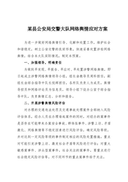 / 【七哥公文】2025年:某县公安局交警大队网络舆情应对方案+更多免费公文+VX:QiGeGongWen2024