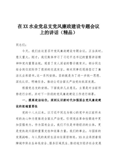 【七哥公文】2025年:在XX水业党总支党风廉政建设专题会议上的讲话(精品)+更多免费公文+VX:QiGeGongWen2024