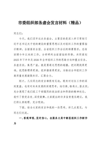 / 【七哥公文】2025年:市委组织部务虚会发言材料(精品)+更多免费公文+VX:QiGeGongWen2024