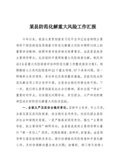 / 【七哥公文】2025年:某县防范化解重大风险工作汇报+更多免费公文+VX:QiGeGongWen2024
