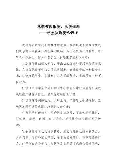 / 【七哥公文】2025年:抵制校园欺凌,从我做起--学生防欺凌承诺书+更多免费公文+VX:QiGeGongWen2024