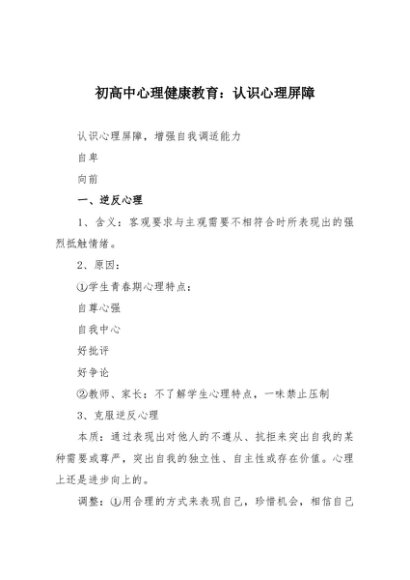 【七哥公文】2025年:初高中心理健康教育:认识心理屏障+更多免费公文+VX:QiGeGongWen2024