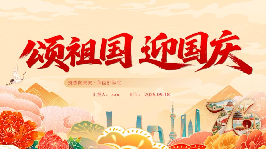 【七哥公文】2025年:2025颂祖国迎国庆PPT国潮风中小学国庆节主题班会课件模板+更多免费公文+VX:QiGeGongWen2024