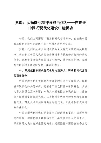【七哥公文】2025年:党课:弘扬奋斗精神与担当作为——在推进中国式现代化建设中建新功+更多免费公文+VX:QiGeGongWen2024