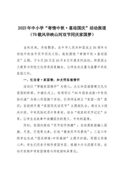 【七哥公文】2025年:2025年中小学“寄情中秋·喜迎国庆”活动报道(76载风华映山河双节同庆家国梦)+更多免费公文+VX:QiGeGongWen2024