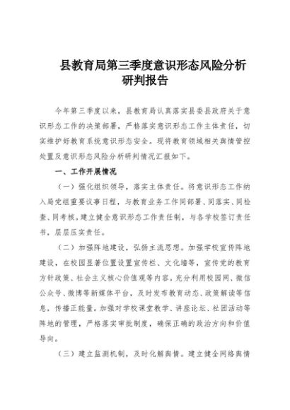 / 【七哥公文】2025年:县教育局第三季度意识形态风险分析研判报告+更多免费公文+VX:QiGeGongWen2024
