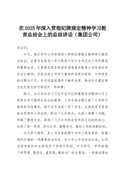 【七哥公文】2025年:在2025年深入贯彻纪律规定精神学习教育总结会上的总结讲话(集团公司)+更多免费公文+VX:QiGeGongWen2024