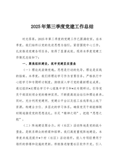 / 【七哥公文】2025年:2025年第三季度党建工作总结+更多免费公文+VX:QiGeGongWen2024