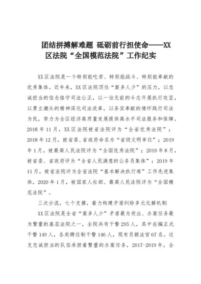 【七哥公文】2025年:团结拼搏解难题 砥砺前行担使命——XX区法院“全国模范法院”工作纪实+更多免费公文+VX:QiGeGongWen2024