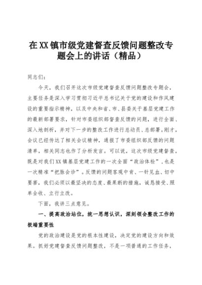 【七哥公文】2025年:在XX镇市级党建督查反馈问题整改专题会上的讲话(精品)+更多免费公文+VX:QiGeGongWen2024