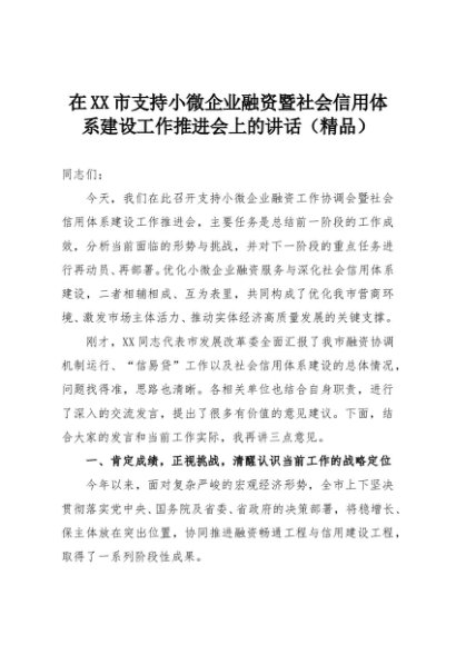 【七哥公文】2025年:在XX市支持小微企业融资暨社会信用体系建设工作推进会上的讲话(精品)+更多免费公文+VX:QiGeGongWen2024