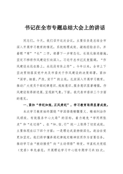 / 【七哥公文】2025年:书记在全市专题总结大会上的讲话+更多免费公文+VX:QiGeGongWen2024