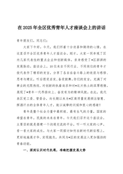 / 【七哥公文】2025年:在2025年全区优秀青年人才座谈会上的讲话+更多免费公文+VX:QiGeGongWen2024