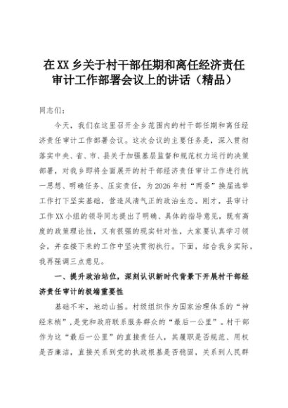 【七哥公文】2025年:在XX乡关于村干部任期和离任经济责任审计工作部署会议上的讲话(精品)+更多免费公文+VX:QiGeGongWen2024