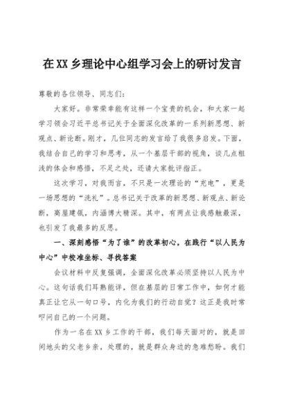 / 【七哥公文】2025年:在XX乡理论中心组学习会上的研讨发言+更多免费公文+VX:QiGeGongWen2024