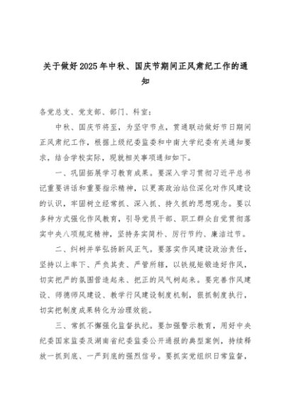 【七哥公文】2025年:关于做好2025年中秋、国庆节期间正风肃纪工作的通知+更多免费公文+VX:QiGeGongWen2024
