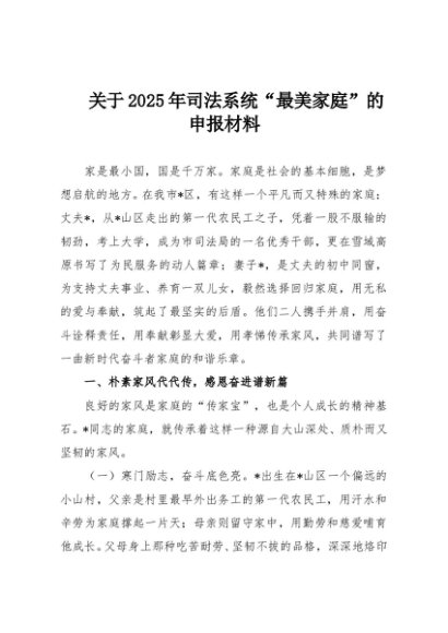 / 【七哥公文】2025年:关于2025年司法系统“最美家庭”的申报材料+更多免费公文+VX:QiGeGongWen2024