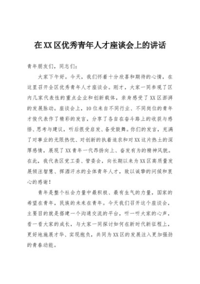 【七哥公文】2025年:在XX区优秀青年人才座谈会上的讲话+更多免费公文+VX:QiGeGongWen2024
