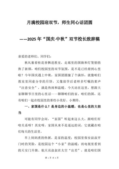 【七哥公文】2025年:2025年“国庆·中秋”双节校长致辞稿:月满校园迎双节,师生同心话团圆+更多免费公文+VX:QiGeGongWen2024