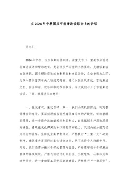 【七哥公文】2025年:【七哥公文】在202X年中秋国庆节前廉政谈话会上的讲话+更多免费公文+VX:QiGeGongWen2024