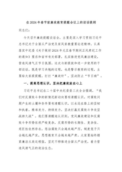 【七哥公文】2025年:【七哥公文】在202X年春节前廉政教育提醒会议上的谈话提纲+更多免费公文+VX:QiGeGongWen2024