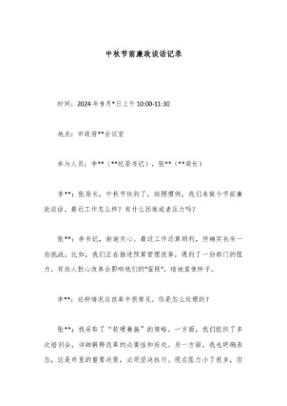 / 【七哥公文】2025年:【七哥公文】中秋节前廉政谈话记录+更多免费公文+VX:QiGeGongWen2024