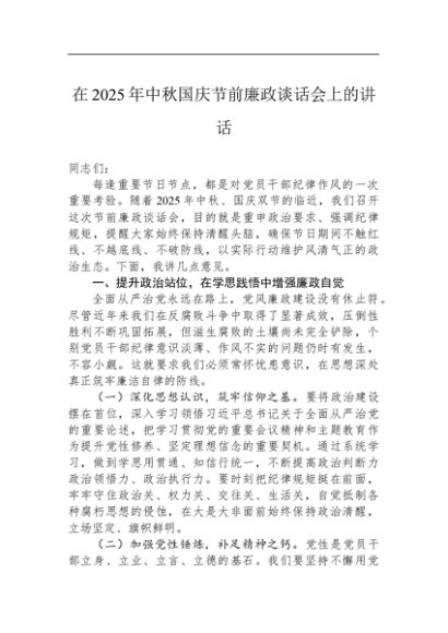 【七哥公文】2025年:【七哥公文】在2025年中秋国庆节前廉政谈话会上的讲话+更多免费公文+VX:QiGeGongWen2024