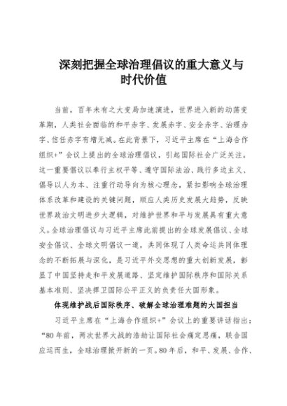 / 【七哥公文】2025年:深刻把握全球治理倡议的重大意义与时代价值+更多免费公文+VX:QiGeGongWen2024