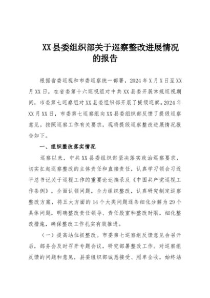/ 【七哥公文】2025年:XX县委组织部关于巡察整改进展情况的报告+更多免费公文+VX:QiGeGongWen2024