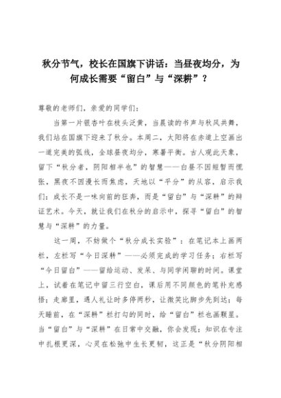 【七哥公文】2025年:秋分节气,校长在国旗下讲话:当昼夜均分,为何成长需要“留白”与“深耕”?+更多免费公文+VX:QiGeGongWen2024