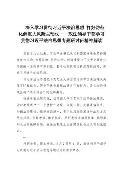 【七哥公文】2025年:深入学习贯彻习近平法治思想 打好防范化解重大风险主动仗——政法领导干部学习贯彻习近平法治思想专题研讨班精神解读+更多免费公文+VX:QiGeGongWen2024