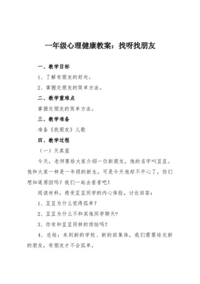 / 【七哥公文】2025年:一年级心理健康教案:找呀找朋友+更多免费公文+VX:QiGeGongWen2024