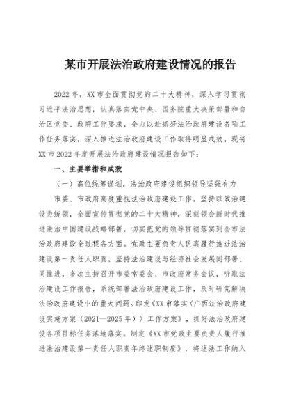 【七哥公文】2025年:某市开展法治政府建设情况的报告+更多免费公文+VX:QiGeGongWen2024