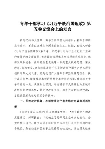 【七哥公文】2025年:青年干部学习《习近平谈治国理政》第五卷交流会上的发言+更多免费公文+VX:QiGeGongWen2024