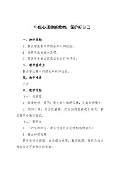 / 【七哥公文】2025年:一年级心理健康教案:保护好自己+更多免费公文+VX:QiGeGongWen2024