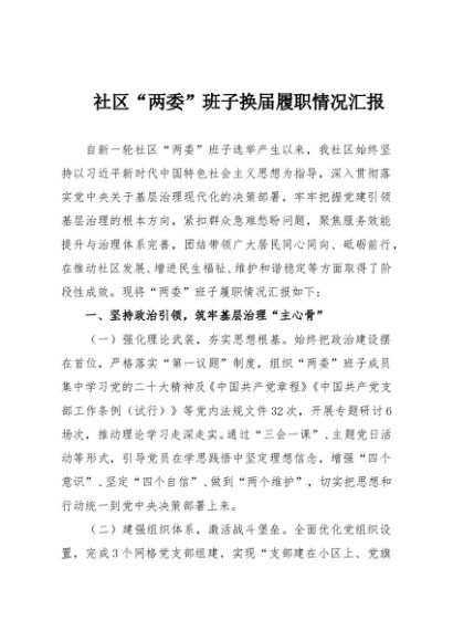 / 【七哥公文】2025年:社区“两委”班子换届履职情况汇报+更多免费公文+VX:QiGeGongWen2024