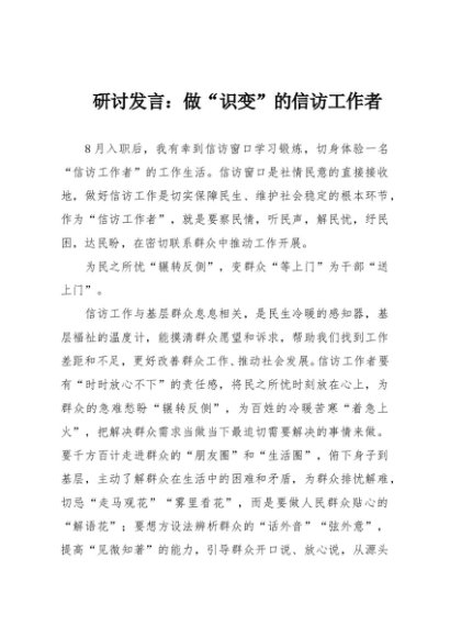 【七哥公文】2025年:研讨发言:做“识变”的信访工作者+更多免费公文+VX:QiGeGongWen2024