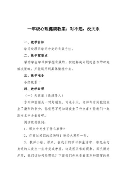 【七哥公文】2025年:一年级心理健康教案:对不起,没关系+更多免费公文+VX:QiGeGongWen2024