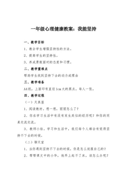 / 【七哥公文】2025年:一年级心理健康教案:我能坚持+更多免费公文+VX:QiGeGongWen2024