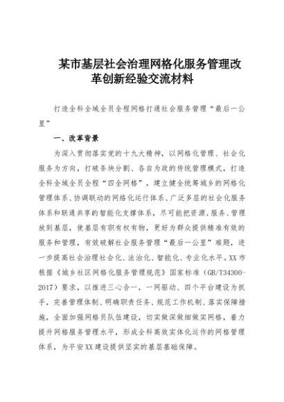 【七哥公文】2025年:某市基层社会治理网格化服务管理改革创新经验交流材料+更多免费公文+VX:QiGeGongWen2024
