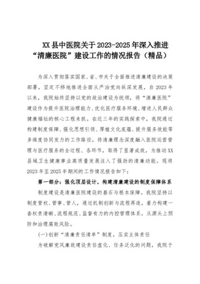 【七哥公文】2025年:XX县中医院关于2023-2025年深入推进“清廉医院”建设工作的情况报告(精品)+更多免费公文+VX:QiGeGongWen2024